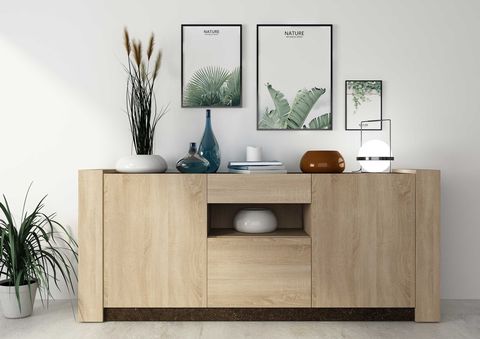 Juego de muebles de sala de estar grande, aparador ligero laminado, color madera de roble, Buffet moderno con estante y cajones