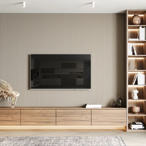 Muebles de sala de estar de lujo, decoración de gabinetes de pared de TV con acabado de madera