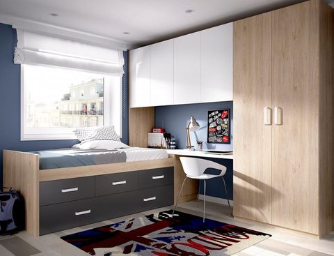 Cama de dormitorio infantil creativa moderna para niños con escritorio de oficina y armario